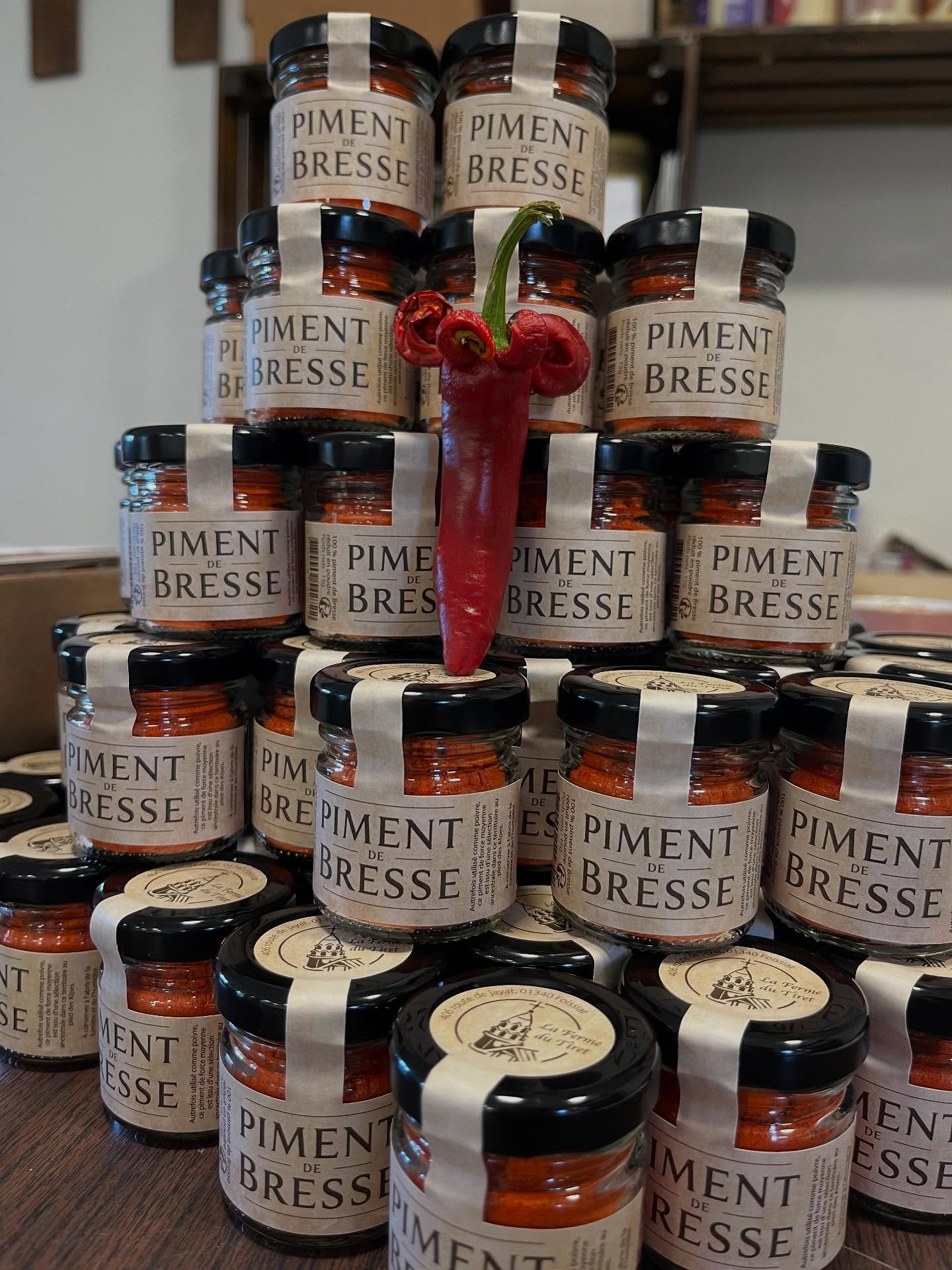 Le piment de Bresse est un piment endémique de Bresse, adapté à son territoire (et surtout son climat). A peine plus fort que son cousin le piment d'espelette, il développe de fort arômes et odeur fruités de poivron / paprika.