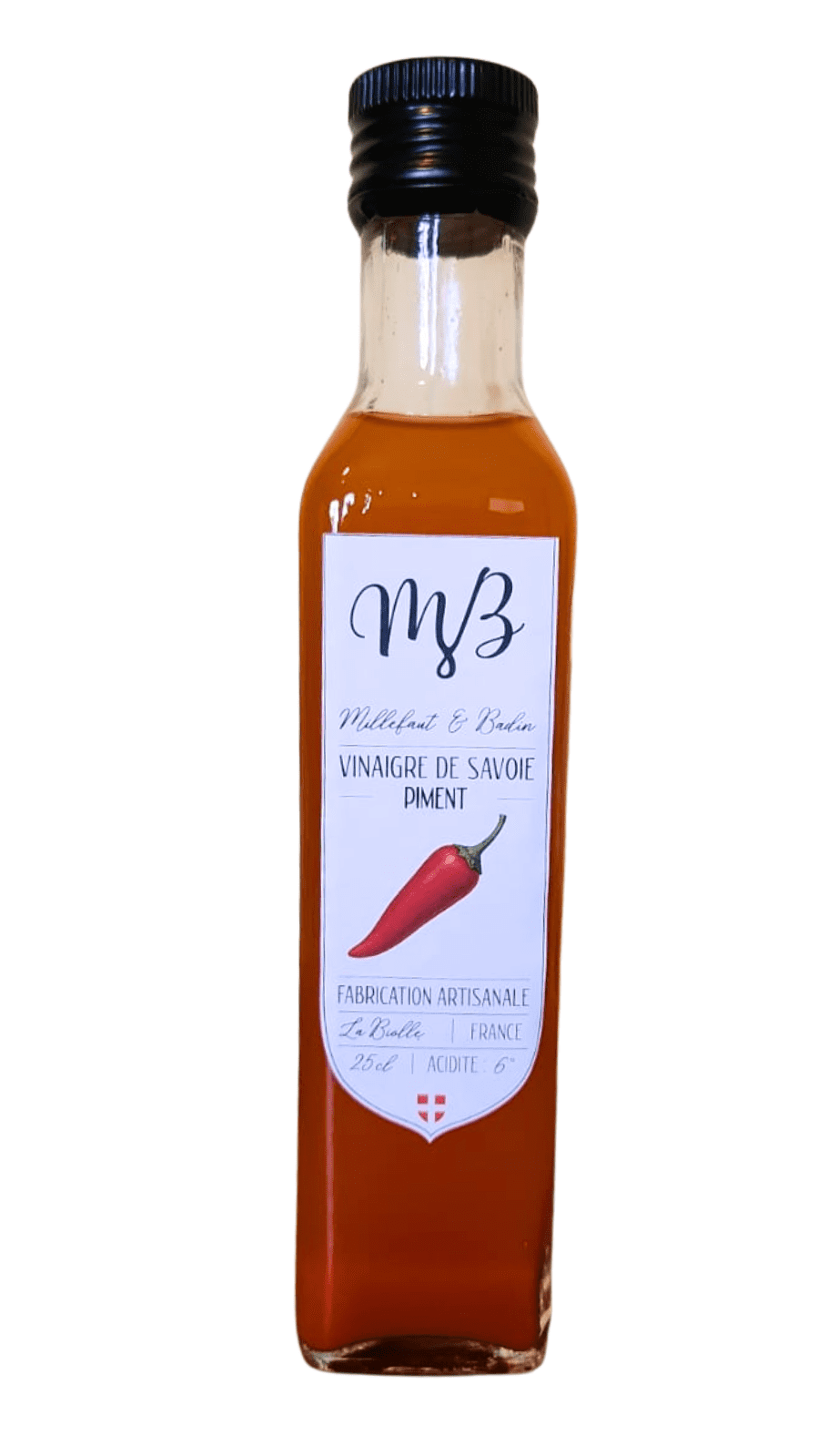 Ingrédients : Vinaigre de vin blanc de Savoie, poudre de piment de Bresse.